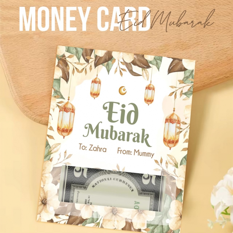Designed with Islamic theme, this money card includes “To” and “From” sections, making it ready to gift without any additional packaging.